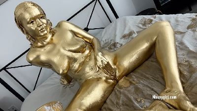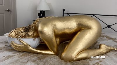 Young 19 year old Cassandra shows it all as she covers herself head to toe in gold paint.