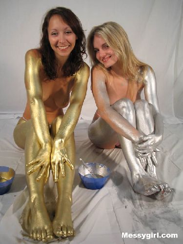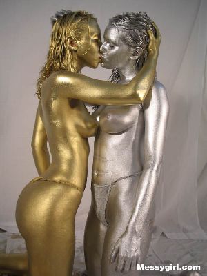 Liz and Lexi paint each other gold and silver. Both girls look so erotic that they can't help themselves and they begin to kiss. A very erotic and artsy shoot as the girls embrace each other.