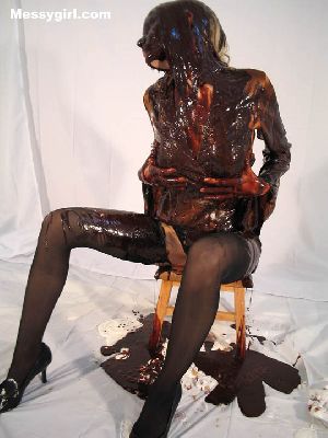 Messygirl is pied and engulfed in chocolate syrup