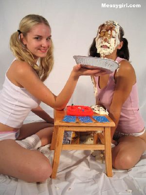 Kobe and Sasha were kind enough to send us their all nude pie fight for the Messy Wives and Girlfriends section.