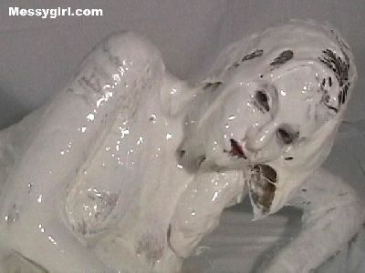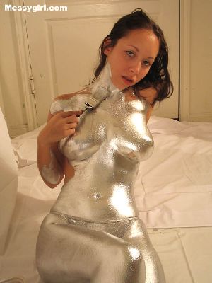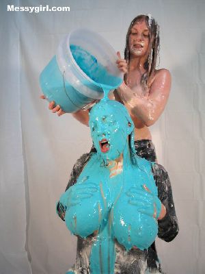 Liz gets artsy, as she is covered head to toe in gold paint. The transformation is breath taking as she is turned into a sexy living work of art. Then is defaced with a bucket of slime, but not to worry, it adds to the transformation into a living work of art, messygirl style.