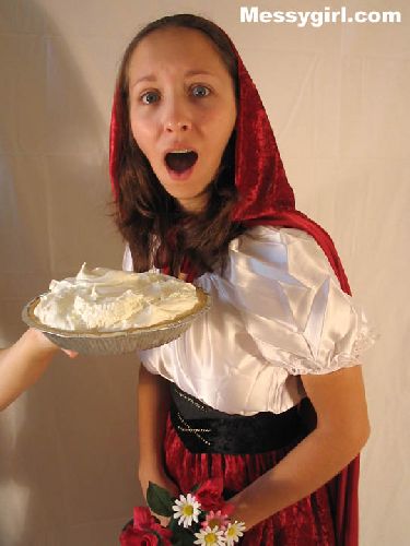 Lexi is pied and slimed dressed as Little Messy Ridinghood, She goes topless for even more pies and slime!