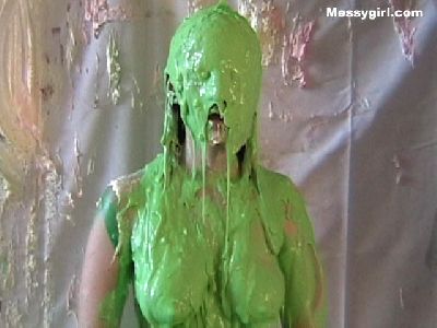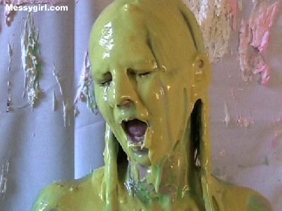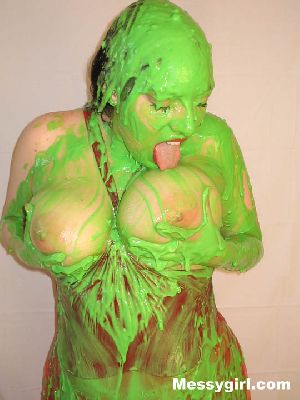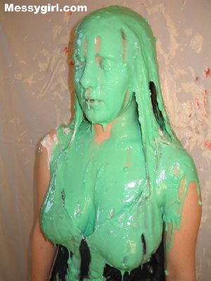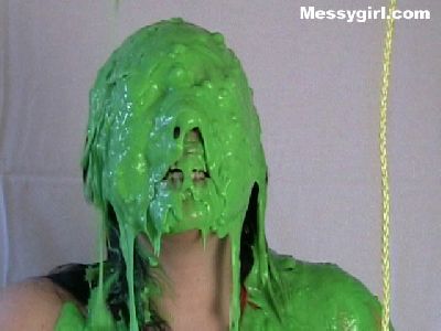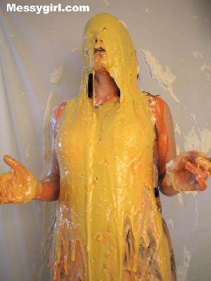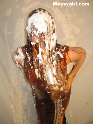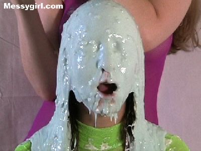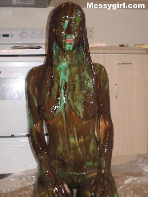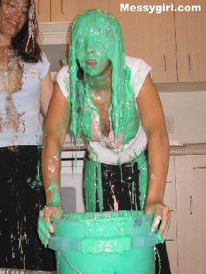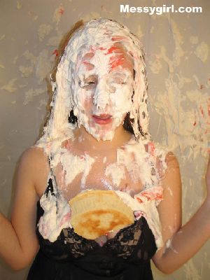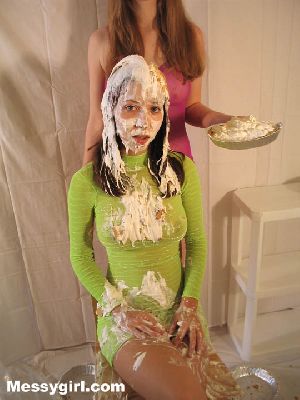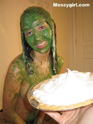 Veronica gets the full Messygirl treatment. She is covered in pies, green slime, pudding and chocolate syrup. She also sits on a pie!