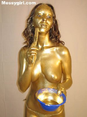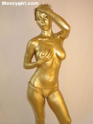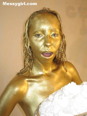 Lexi covers her sexy body for the first time in gold paint. She then takes a few pies to the face to finish the erotic transformation.