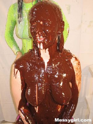 Lexi and Sara meet for the first time for some extra messy pie and slime play. Both girls end up topless and coated in chocolate!