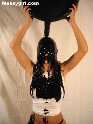 Sexy Lexi pours black oily sludge over her head and then smears it all over her body. She goes topless!