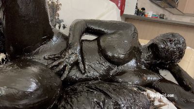 Scarlett goes WAM extreme as she covers her sexy nude body in black grease. She shows it all as she slathers herself. Hot!