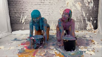 Adorable 19 year old Dakota does her first gold paint shoot. She is more than happy to show off every inch of her body as she covers herself. The paint collects in a pool underneath her and eventually goes inside her pussy and asshole, causing wet queef noises. Hot stuff!