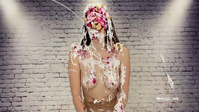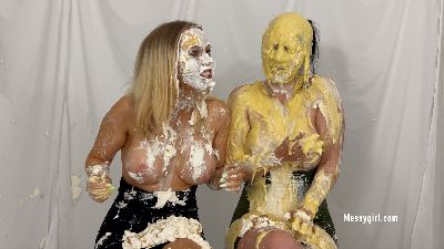 Young 18 year old WAM virgin gets the Messygirl treatment from Penelope. She end up totally covered and topless.