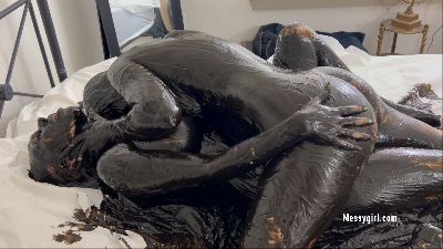 Zoey and Penelope go hardcore in bed while covered head to toe in grease. Totally hot and orgasmic!