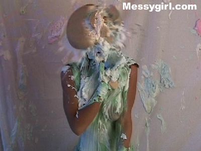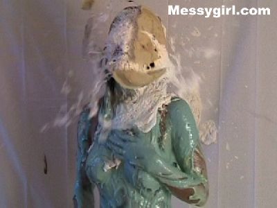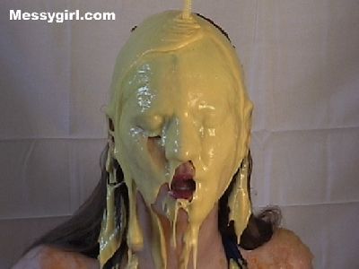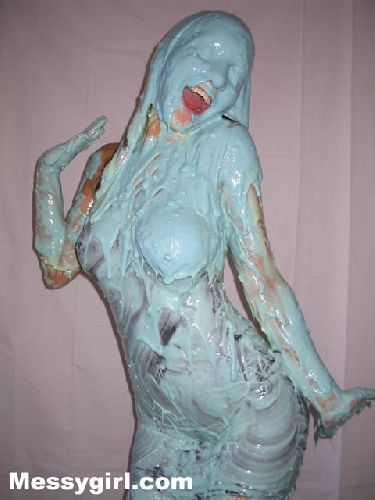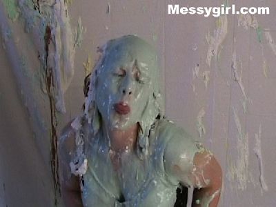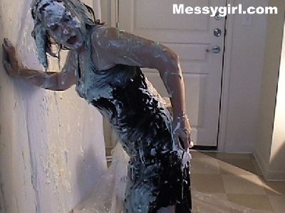 Sara take a bath in gooey, sticky plaster. She is totally covered from head to toe.