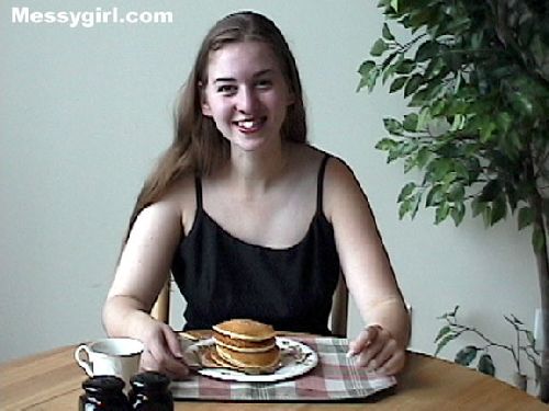 Sara has a very messy breakfast. She gets covered in syrup and butter and has a bit of fun with her pancakes,