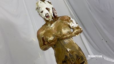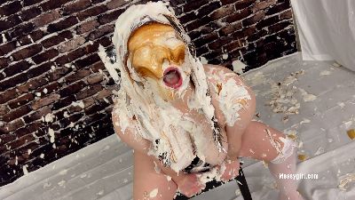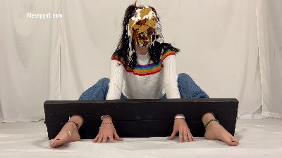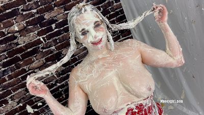 Young 19 year old Cassandra does her first WAM shoot. She is naturally nervous as she awaits her messy onslaught. We don't hold back as she is unmercifully pied and slimed. A Messygirl star is born!