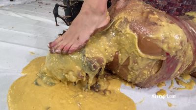 Zoey is being very hard on her maid Stephanie. She humiliates her as she tries to clean by pouring more mess on her and the floor. She even force feeds her the messy slop.