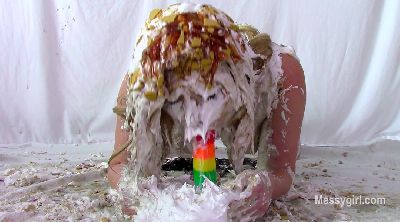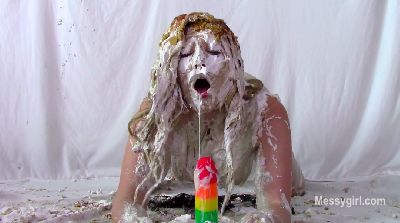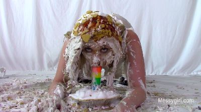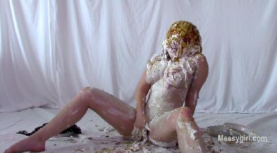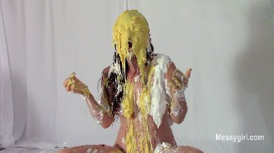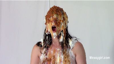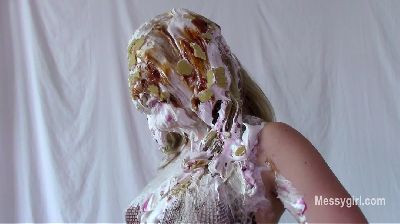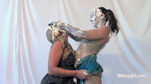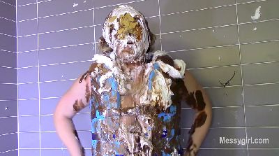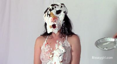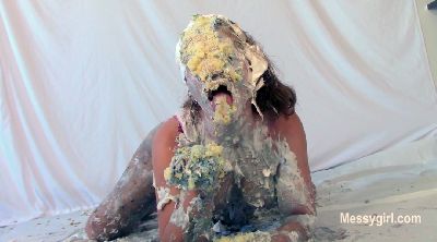 Sabrina has done two shoots for us, but has not yet been initiated. Well, today is the day for that. Amy is on hand to administer the humiliating and messy initiation. Poor Sabrina has no idea what she is instore for. Amy starts out by teasing Sabrina with a pie and has it smashed hard in her face. After a few more pies to the face and some whipped cream play, she gives Sabrina a slime pour over the head. She then makes Sabrina get on all fours for head dunking in a bucket of slop. Amy then strips off Sabrina's dress and makes her get on all fours again so she can pull down her panties for a pie to the ass. This is followed with a wedgie. Amy is calling Sabrina names such as "Messy Slut" and "Pig" as she makes her roll about in the slop. Amy then makes Sabrina pie herself and smear it all over her now slop covered body. Now Sabrina can call herself a true Messygirl.