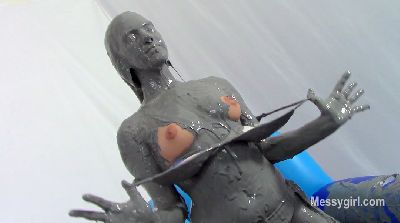 Sabrina goes WAM extreme as she is covered head to toe in sticky black grease. She goes from wearing a bikini to all nude.