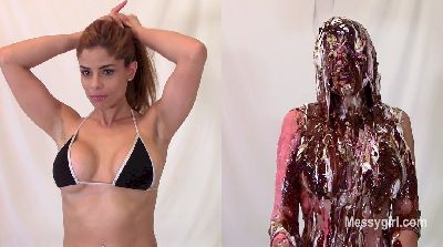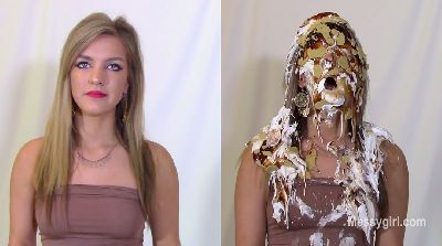 Sexy fitness model Priscilla makes her Messygirl debut. We use a split screen so you can watch a constant before and after view of her while she is being destroyed in pies and slime