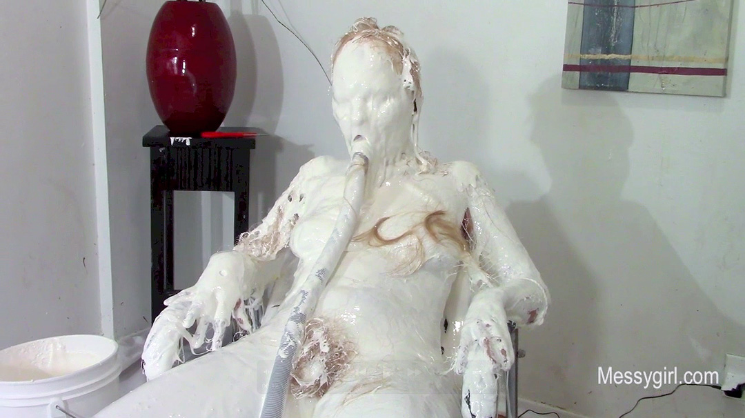 Penelope returns after taking a year off to pursue a glamour modeling career. It turns out that she missed being a Messygirl and asked if she could come back. We were more than happy to have her get messy for us again. So we introduced her to our new messy boat to help her get back in the swing of things. She starts out wearing a tight dress and open toe heels. She takes off the shoes and steps into the messy boat. When she is seated and relaxed, she tells Mr MG to let her have it. She is then greeted with pies hard to the face and endless slime pours over the head. She is loving it! She then takes off the dress and rolls around in the slop that has collected in the boat. You get a nice view of her exposed sloppy ass and pussy as she rolls around. She can't get enough of the slop as she pours it over her head continuously. Welcome back Penelope!