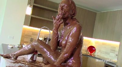 Vika stars in her own baking show. This episode features the uses of Nutella. She tells the veiwers all the ways to use Nutella, but her favorote is to use it on her. So she gets on the counter and seductively spreads the Nutella on herself. She starts with her feet and legs. She takes off her panties and exposes her pussy before she slathers it. She then goes nude and keeps smearing the stuff all over her hot body. The last thing she slathers is her face, and now she is totally covered. She is turned on so much from the messy sensation that she speards open her legs and masturbates until she cums. Very Hot!
