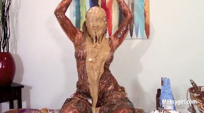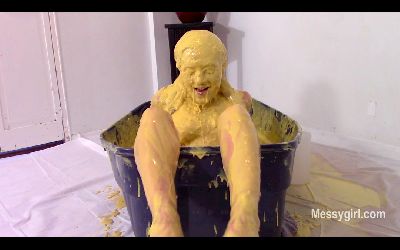 Amy does her very first messy submerging shoot. You will enjoy watching her strip nude and going under the tub filled with thick poundcake batter.