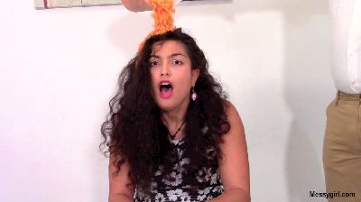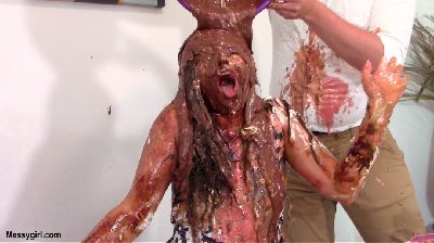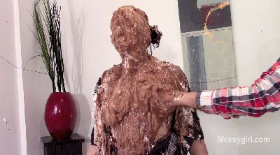 Misty is being interviewed by Amy for a maids job. But Amy finds out Misty lied about her work experiance and will tell the agency that sent her. Misty begs Amy to not tell the agency and that she will do anything because she needs the job. Well, Amy wants to teach Misty a lesson, so she takes her to the basement to have a bit of fun with her. She makes Misty strip nude and then get on the mattress so that she can tie her arms and legs together. Amy then inserts a gag in Misty's mouth. Now comes the messy humiliation. Amy smears peanut butter all over Misty's body including her face and into her mouth with the open mouth gag. Next comes dark honey over her head and this is followed with caramel syrup. Poor Misty is a total mess, but next comes chocolate syrup over her head and body. Amy then tells her to open her mouth and inserts the force feeder. Amy makes Misty swallow a chocolate shake and then scoops up the slop on the bed and feeds it to Misty as well. Amy then tells her roll around in the mess like a pig. Once Misty is done, she crawls away a humiliated mess. The good news is she got the job!