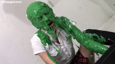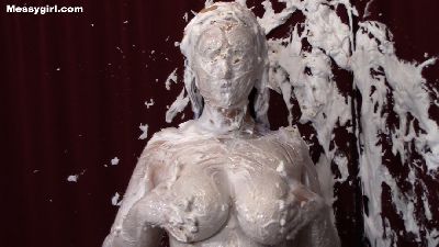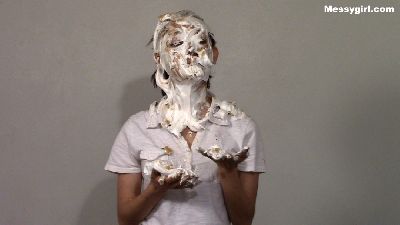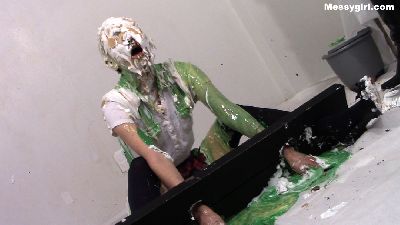 Cute WAM virgin Jessie pays us a visit. She is very nervous and has no idea what to expect. We ask her to tell us a bit about herself and during the interview she is pied. You will love her reaction as she experiences pies for the first time. Next is a batter pour over the head. She tries to keep her compouser as the mess keeps coming. She then takes off her sexy teddy and gets pied topless. She then pies herself and then gets a chocolate batter pour over the head. She is now a complete mess as she gets on all fours and pushes her face in a pie on the floor. She then pours more batter over her head and rubs it all over her now nude body. You get the added bonus of Jessie taking a shower as she is interviewed about her first Messygirl shoot.