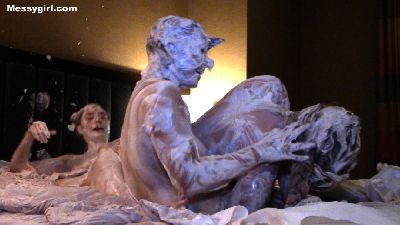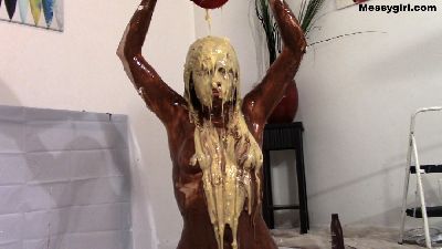 Husband sacrifices his Asian wife, Katy, to Amy, fulfilling his dirty desire for lesbian fun. Amy pies this cutie till she loses count and submerges her beautiful face in buckets of chocolate batter. Amy then pours the batter over Katy`s head and rubs butter cream on her tits and lips. Before you know it, Katy is totally covered head to toe in the mess. Amy finishes her off with a cream slime pour. Katy also gets spanked and has her hair pulled, making her an official MessyGirl.