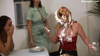 Amy gives newbie Alana her Messygirl initiation. Amy doesn't hold back as she destroys Alana with pies, batter, slime and extreme head dunking. Alana is transformed into an unrecognizable sexy blob by the time Amy is done with her.