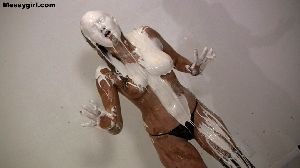 Tilly goes WAM extreme, as she fucks a huge dildo attached to an inflatable ball, while covering herself in shortening. She goes non stop fucking herself as she is slathered head to toe in the greasy stuff. She then takes a bucket of liquid marshmallow cream and pour that over her head.