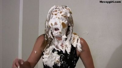 Amy is teaching a class on the best way to deliver a pie. She asks for a student too play the victim, but soon finds out that she is the victim. Amy is creamed in the face with pie after pie, She even after her dress is ripped off and has chocolate poured over her head. She then becomes aroused and masturbates until she cums.