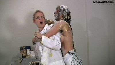Liz and Jasmine are in a heating discussion about who looks best messy. Needless to say a messy tit for tat fight breaks out with pies and batter. The girls do make up and get very naughty in the mess. Very sexy stuff!