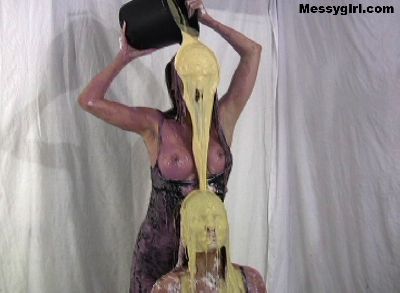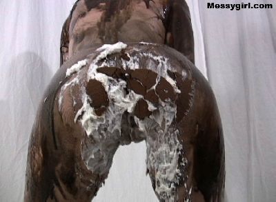 Star covers herself head to toe in sticky marshmallow cream and then washes it off in the shower.