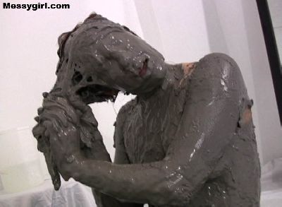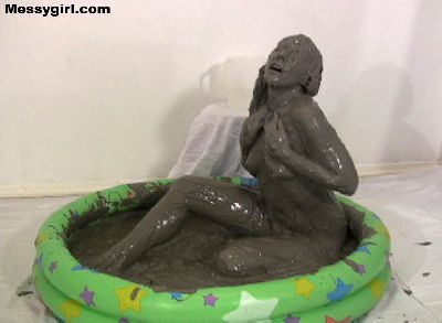 Cute Debbie is transformed from a classy girl wearing a black evening dress and heels to a naughty nude mud girl.