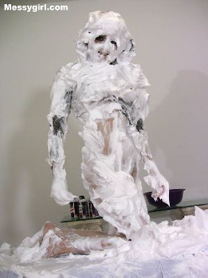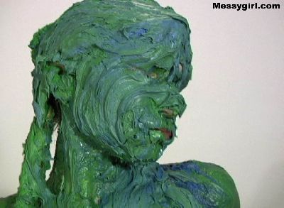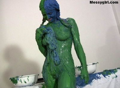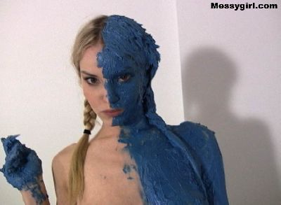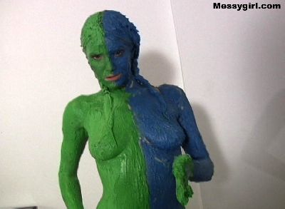 Liz gets creative as she covers herself in green and blue butter cream.