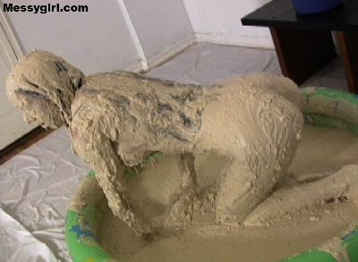 Candle Boxx coats herself head to toe in the thick sticky clay and then takes the fucking machine in her ass!