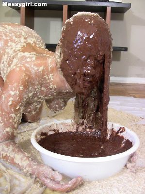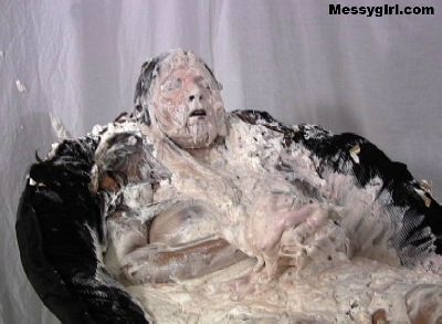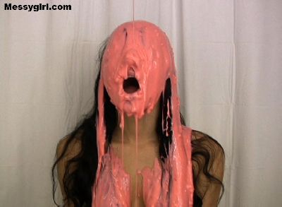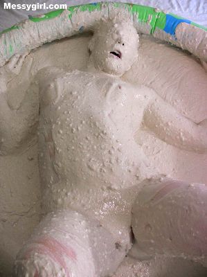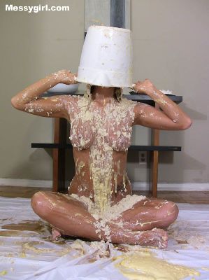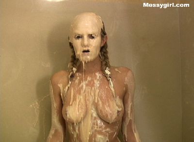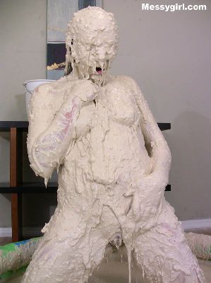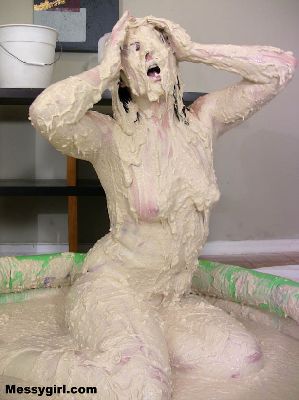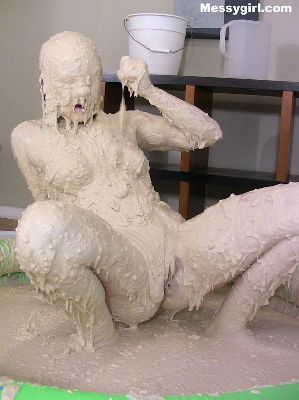 Cute Debbie is transformed into a sexy gooey glop girls. She is coated in a sticky flour and water mix.