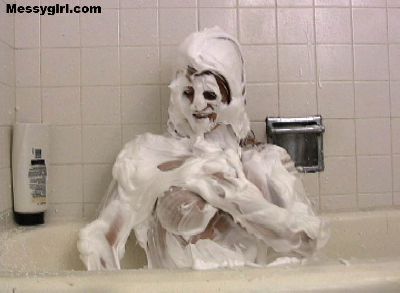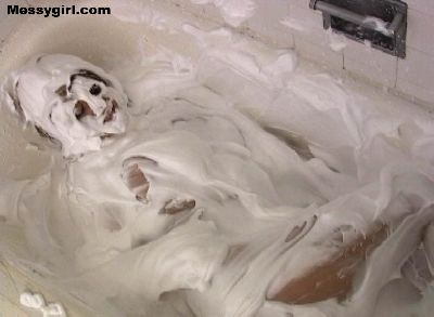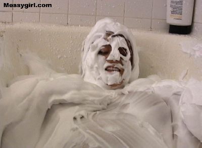 Video of Angela taking a shaving cream bath