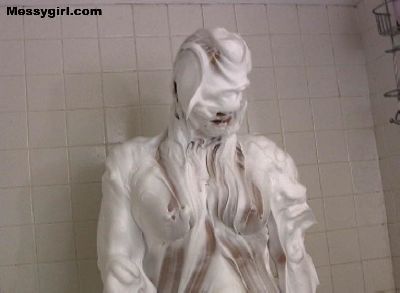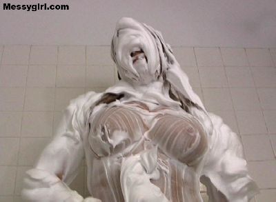 Busty Angela takes a good old fashion shaving cream bath. Total coverage!