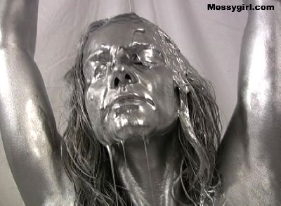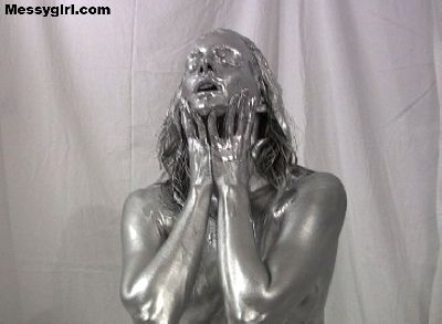 Cute and sexy Brittany covers herself in silver paint. Very erotic and artistic.
