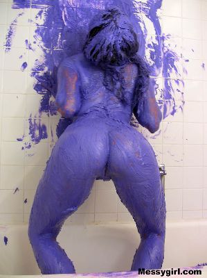 Sexy Lane covers herself in blue butter cream and then takes a shower.