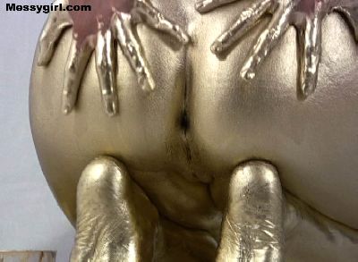 Sexy Asian babe Vivian is covered head to toe in gold paint.