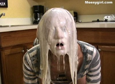 Sexy Angela takes on gallons of batter slime as she sits nude in the bath tub. Her pretty face is engulfed in the thick mess.