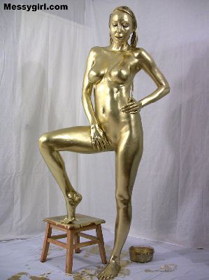 Sexy Lane is covered head to toe in gold paint.