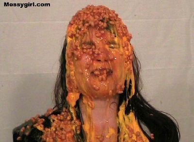 Vicky takes the messygirl shampoo challenge! She endures applesauce, syrup, cheese sauce, beans and a half gallon of mayo!