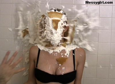 Tracy wakes up Vicky with a pie and then both girls take turns getting each other messy.