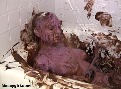 Liz and Danielle team up for some messy play time. Total messy coverage for both girls clothed to nude.