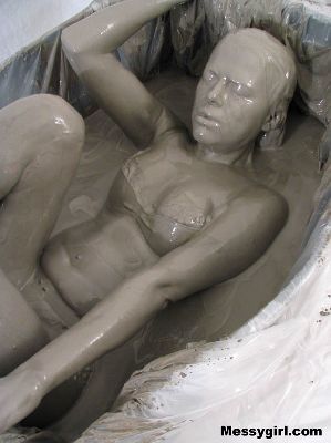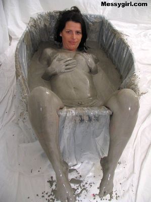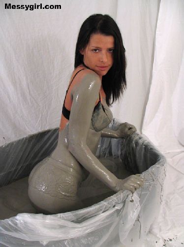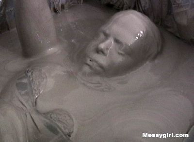Cami takes a very erotic mud bath in slippery liquid clay. She even submerges her head and masturbates!
