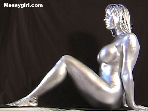Sexy Amber paints herself silver and poses as a mud flap girl. She then has mud thrown at her to finish the look!