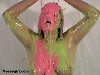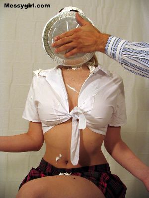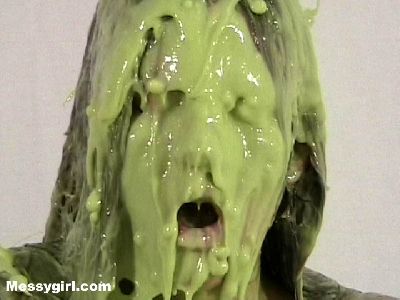Liz is in her school girl outfit as she gets pied and slimed! She ends up nude and covered head to toe in the slop!