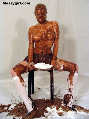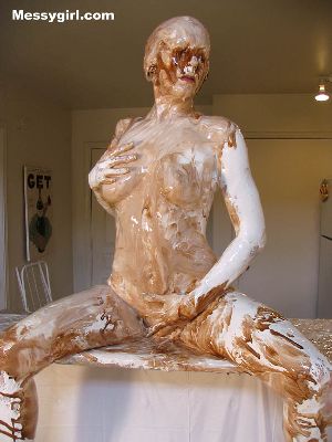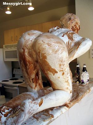 Sexy Nikki covers herself in sticky marshmallow cream and chocolate syrup. She ends up head to toe messy and nude!